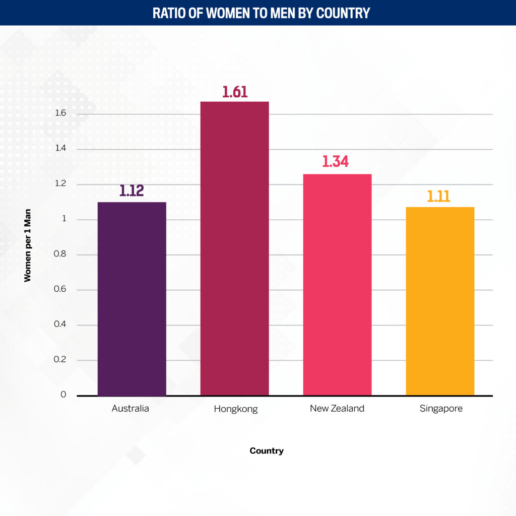 Hong Kong – 40,000 women to 24,800 men